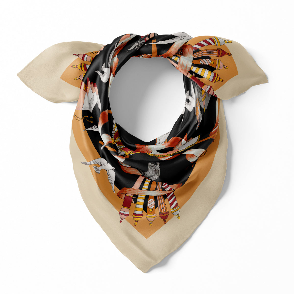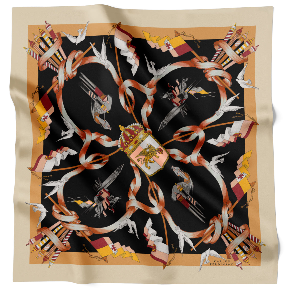 Carlos Ferdinand Fringed Monogram Camel CF900-16 Size: 90cm Fabric: Silk Extra Feature: Fringed Hem