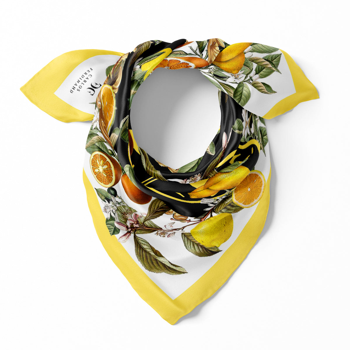 Carlos Ferdinand Fringed Monogram White CF900-5 Size: 90cm Fabric: Silk Extra Feature: Fringed Hem