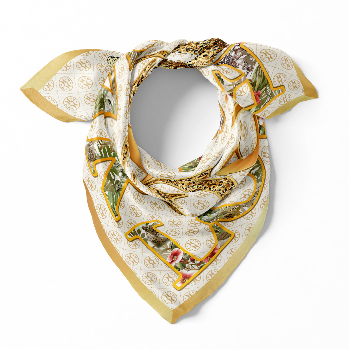 Carlos Ferdinand Fringed Monogram White CF900-5 Size: 90cm Fabric: Silk Extra Feature: Fringed Hem